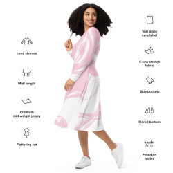 • 'Pink Swirl' All-over print long sleeve midi dress